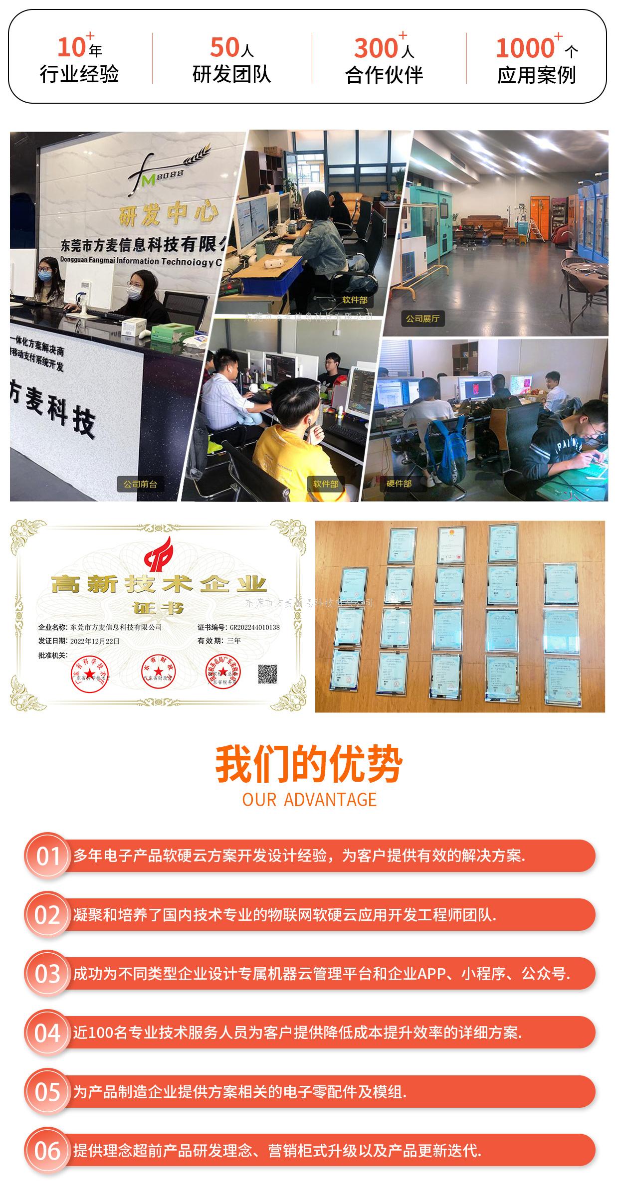 东莞市方麦信息科技有限公司是物联网(软件+云+智能硬件)设计解决方案提供商,(以下简称方麦科技)方麦科技多年物联网(软件+云+智能硬件)电子产品解决方案开发设计经验。累计开发物联网软硬件产品应用设计方案近百种。目前为客户提供理念超前物联系网技术应用:(包含:手机app、小程序、生活号H5开发、云端平台、机、管理后台、PC端管理后台、移动支付技术 、PCB电路板设计、ARM单片机技术、stm32技术、嵌入式系统、脉冲技术、GPRS+GPS技术(4G、2G)、wifi、蓝牙 NBIOT、zigbee、433 、RFID射频、PM2.5采集、温度采集远程控制、湿度采集远程控制、继电器电源远程控制、光感传感、雨感传感IO、云平台协议定议等)