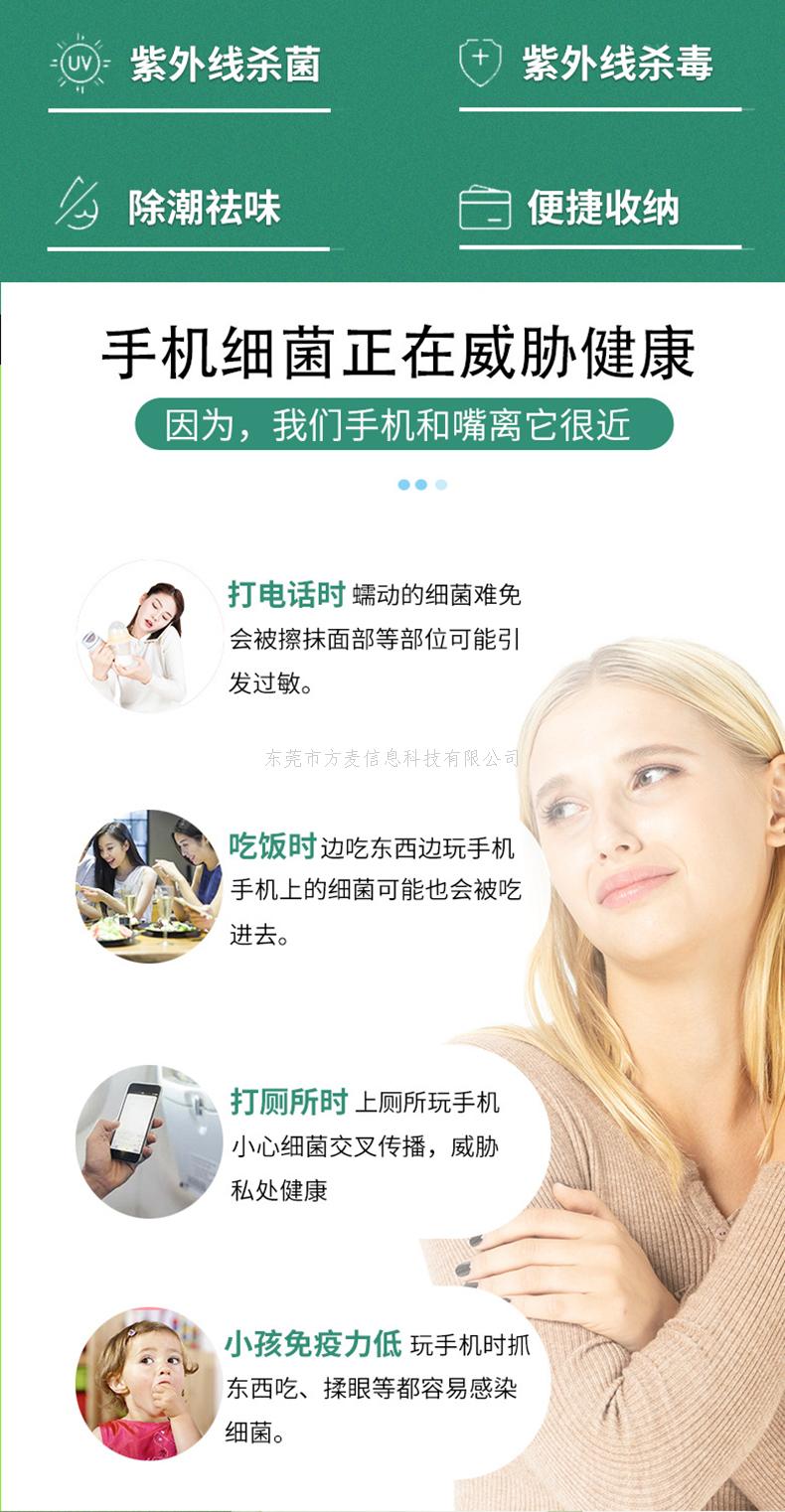 随着智能手机的功能多样化,人们使用手机的频率也随之增加,即使用手机的时间越来越多,这样就导致手机更容易滋生细菌,当人的手、脸和耳朵接触到手机时,这些细菌就会沾污在人体的皮肤上,导致皮肤的不良反应或者疾病,尤其在手机通话的时候,这些细菌或病毒极易通过口腔进入到体内,给我们身体带来危害。