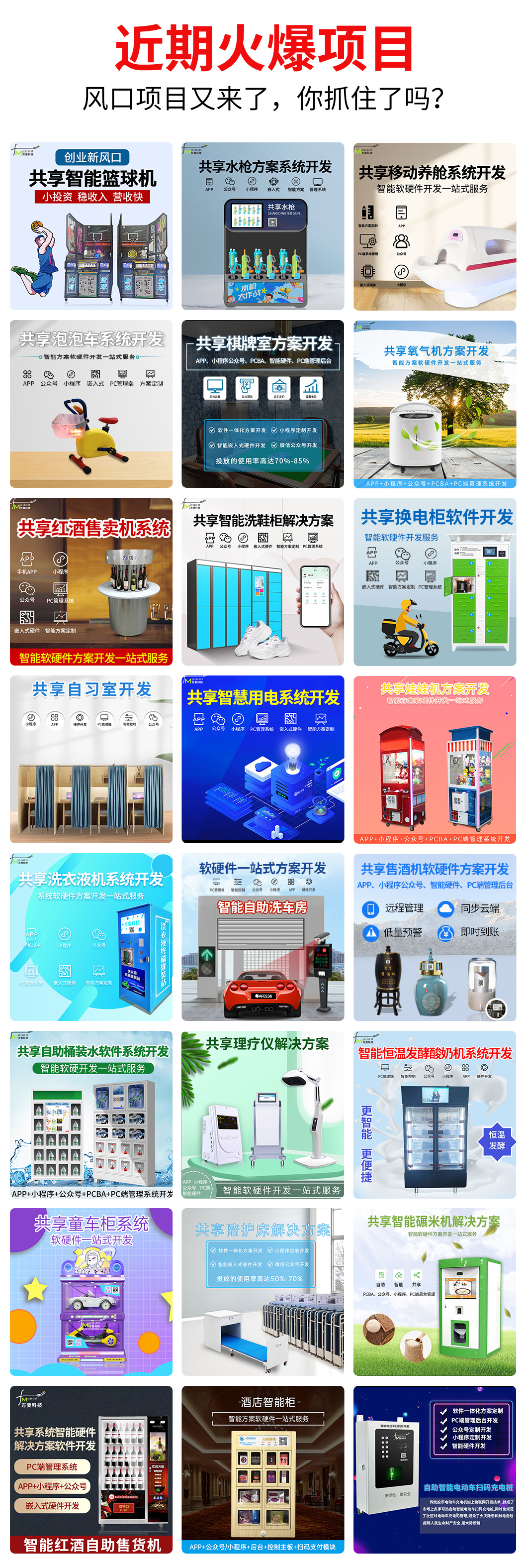 共享经济精典案例:共享经济精典案例:共享洗衣机、自助洗车机、自助售货机(弹簧柜、人脸识别、称重型、格子柜)、自助健身房、共享钢琴房、、共享雨伞(RFID识别)、共享充电桩(电动车、汽车)共享单车共享充电宝(柜租取式、桌面充电式、充电线式、密码式)共享擦鞋机、共享微波炉、共享新风机、共享储存柜共享智能碾米机、共享医疗器械、共享玩具柜、共享筋膜枪、公共救援平台系统、共享投蓝训练机、共享停车位、智能窗帘、共享烘干衣机、自助桶装水柜、自助板栗机、远程抄表系统、自助酸奶发酵机、共享轮椅、共享空调、共享书柜、共享滑板车、共享童车、智能垃圾桶、智能早餐柜、共享咖啡机、共享充电线、共享充电器、共享氧气机、共享太空舱、共享足疗机、共享酒店情趣柜、智慧路灯、物联网净水机、共享售酒机、共享按摩椅、共享车载按摩垫、共享按摩抱枕、共享空气净化器、共享电锅炉、共享暖炉、共享陪护床(柜租取式、床头柜式)、共享纸巾机、扫码售水机、自助饮料机、自助太空舱、自助净水器、自助干衣机、RFID红酒售货柜、共享自助洗车房、共享茶室、自助漱口水售卖机、共享玩具枪柜等-----